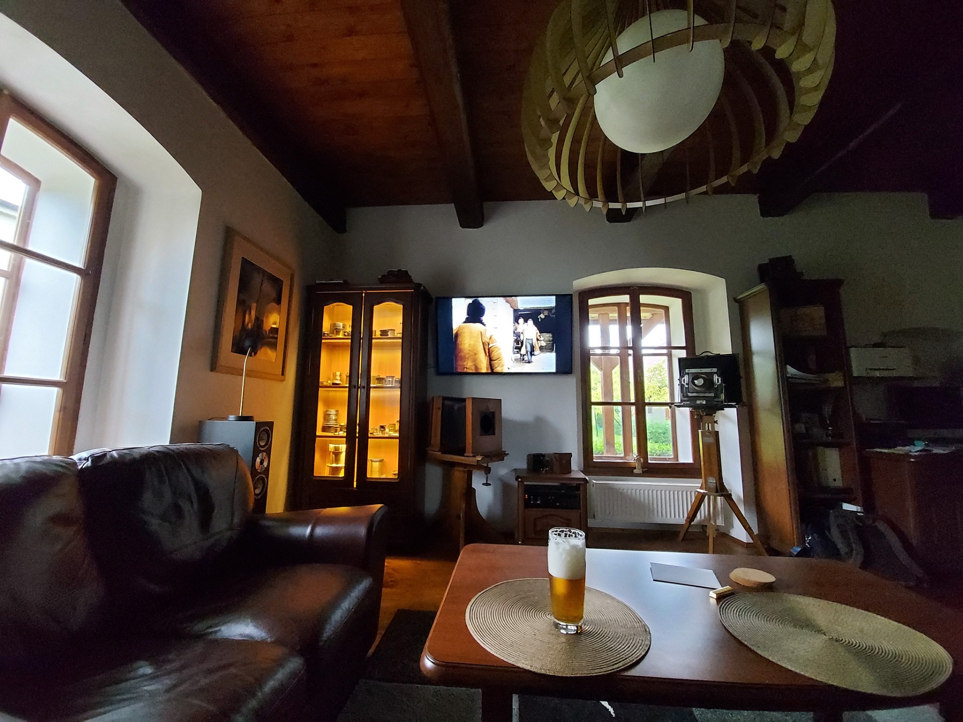 V patře jsou dvě podkrovní místnosti obložené dřevem, vytápěné horkovzduchem z krbové vložky i ústředním topením z kotelny. Jedna místnost je obrovská, druhá je menší, mez nimi je v patře salónek. Tyto místnosti nejsou nyní využívané, byl zde předpoklad vybudování druhé bytové jednotky.