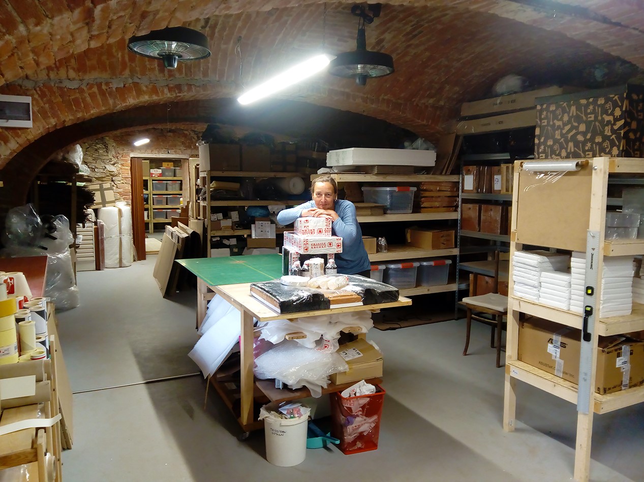 Pracovní prostory jsou zrekonstruované chlívy s kamennými zdmi a cihlovou klenbou, kde je vylívaná betonová podlaha opatřená průmyslovým nátěrem, nová dřevěná na míru dělaná okna, na míru dělané dřevěné dveře ve vesnickém stylu, nové rozvody vody a odpadů do všech místností, ve všech místnostech je rozvedena nově silová elektřina a nové ústřední topení. Tyto prostory byly využívány jako E-shop, stolařská dílna a fotochemická laboratoř, zde je provedeno navíc podlahové elektrické vytápění pod dlažbou (možnost využití jako kuchyně). Celý tento prostor tvoří tři oddělené místnosti a jedna větší, která se používala jako sklad a balíkovna.