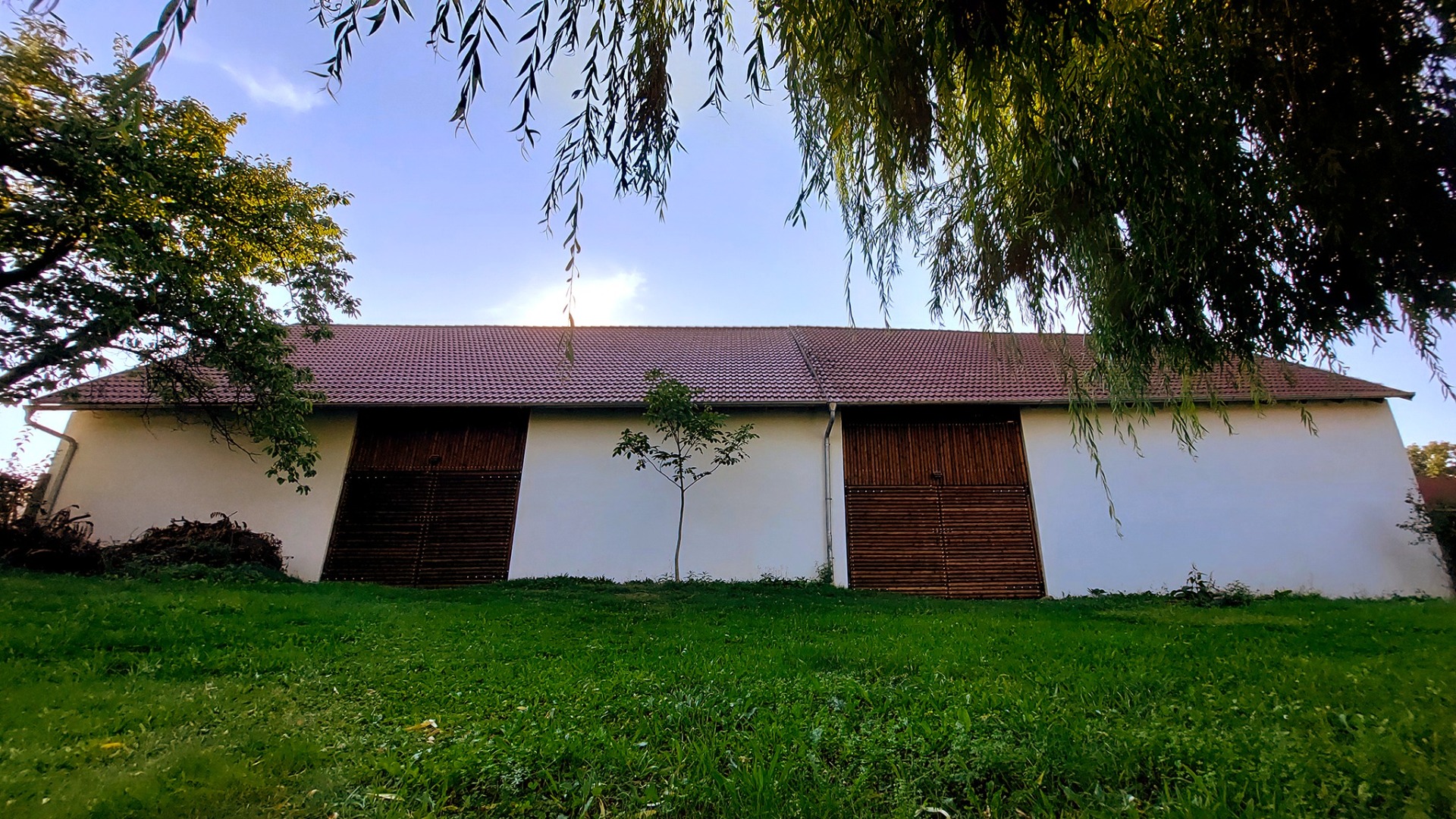 Stodola se dvěma bránami a jedním průjezdem do zadní zahrady, s novou střechou, novou výdřevou, nově omítnutá s novými branami z tlakově impregnovaných přesných půlkuláků, s rozměry 40x12m, zde jde fakt uskladnit spoustu materiálu, uskladňoval se zde materiál pro stolárnu tak v 50% místa, zbytek se nevyužíval. V polovině je dnes skladováno naštípané dřevo pro otop v krbové vložce a na kachlovém kuchyňském sporáku na cca 5 let.
