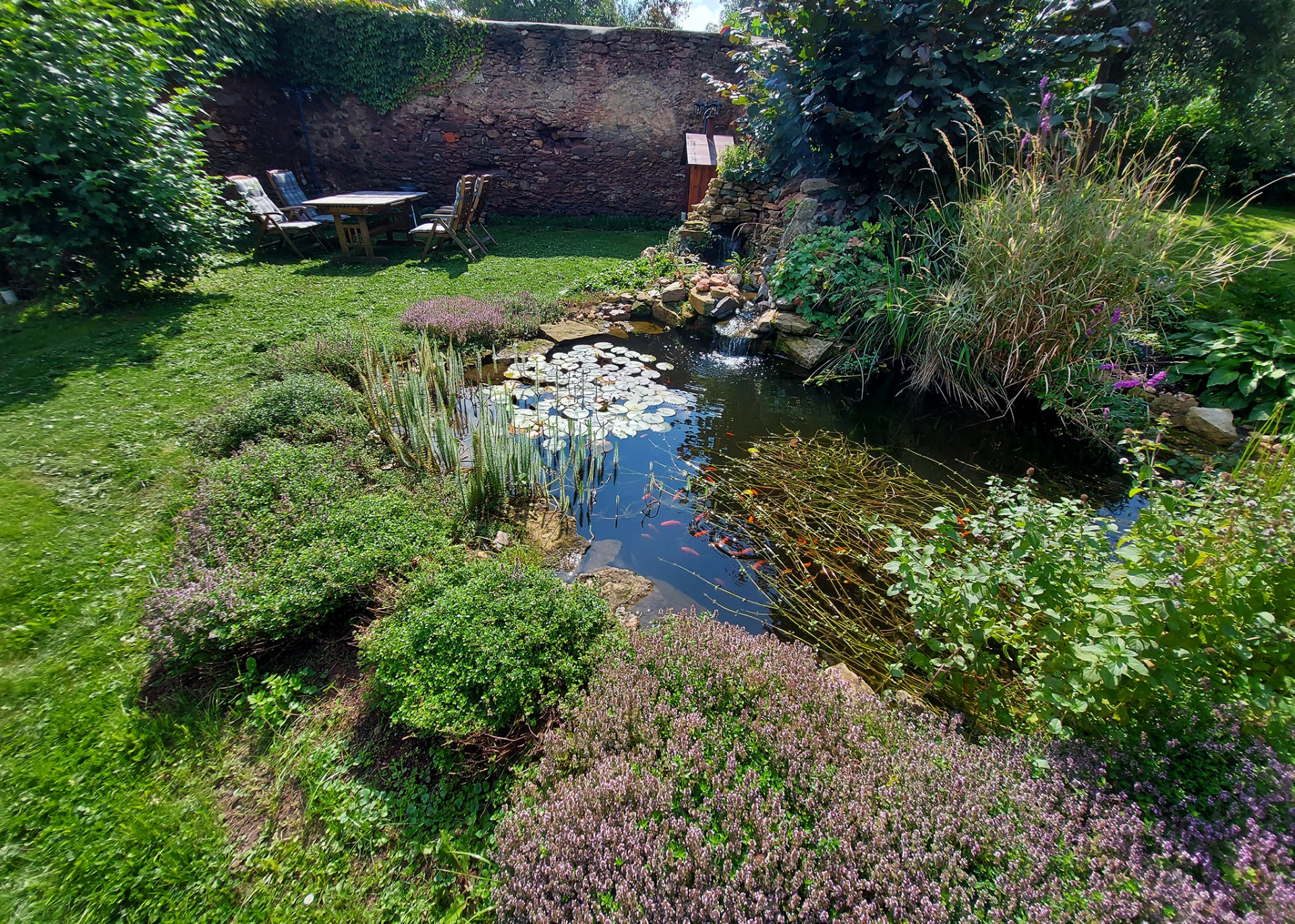 Nemovitost je napojena na obecní vodovod... je zde ale i samostatný přívod vody z vrtu (30 m hloubka) s hloubkovým čerpadlem, v prostoru přívodu v nemovitosti je nainstalován filtr, expanzní jednotka pro použití vody z vrtu. Dvěma ventily lze přívod do domu přestavovat. Použití pro naplnění nádrží pro užitkovou vodu, zalévání, umytí auta a podobně. V kotelně je ventil pro připojení zahradních hadic. Navíc je zde ještě jedna studna s vodou a ruční zdobnou litinovou pumpou.