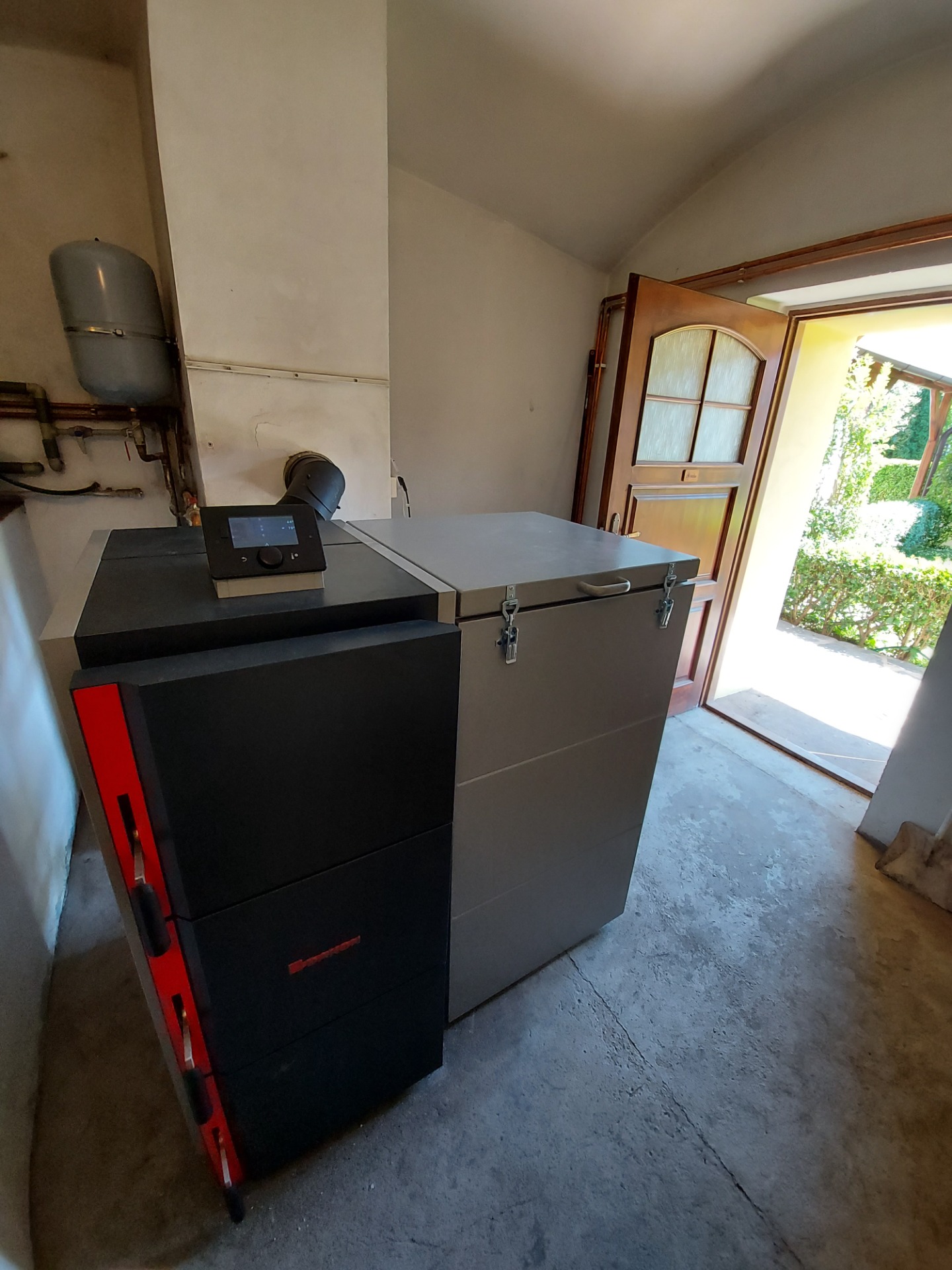 Nemovitost prošla kompletní rekonstrukcí - byly vyměněny střešní dřevěné konstrukce, tepelně zaizolovány, krytina byla vyměněna za KM Beta. Celá nemovitost byla podřezaná, podkopaná, odvodněná a odpadním potrubím je svedena voda do místního rybníku přes bývalou žumpu - nádrž o objemu cca 10m3 na pozemku, nejnižší bod pod chalupou (ve sklepě je kadloubek) byl osazen čerpadlem, který funguje v automatickém režimu. Všechny okapy jsou taktéž svedeny do bývalé žumpy a odtud pokračují dešťosvodem do obecního rybníka. Celý objekt byl zateplen, stropy zaizolovány, natažena omítka na flexilepidlo s perlinkou, omítka je silikátová, částečně štuková vápenocementová jemná štuková se silikonovým nátěrem. Byla instalována nová kotelna s automatickým kotlem se zásobníkem, dnes na hnědé uhlí, jednoduše přeprogramovatelná na pelety (pár kroků v programu), navíc 2 km od domu je peletkárna, kde se dají pelety výhodně koupit, uhelný sklad je stejně daleko. Dnes je kotel obsluhován jednou týdně - naplnění zásobníku uhlím a vysypání zásobníku popela. Provoz je plně automatický a je tzv. blbovzdorný - chráněný spousty čidly proti možným poruchám a stavům. Sám si řekne, kdy je třeba pročistit průduchy v kotli (práce na 10 minut). Kotel se na podzim spustí a topí až do jara. Má schopnost udržet v nemovitosti nezámrznou teplotu i několik týdnů. Teplota nemovitosti je řízena pomocí RF ovládače v prostoru bydlení. V kotelně je instalován i 180 l kotel, tzv. obojživelník, který je v zimě vytápěn kotlem, v létě elektrikou. Spotřeba topiva na celou sezónu je 20 q uhlí. Celá nemovitost je zateplená, její konstrukce je akumulační, celý objekt je tvořen kamennými zdmi, zhruba 120cm silnými. V podstatě to znamená, že se do kotelny chodí jednou týdně a když se opomene, tak dům drží teplo ještě pár dní. Roztopení kotle je automatické za pomocí pár třísek, takže i v této chvíli není problém celou nemovitost rychle roztopit. Navíc jsou zde ještě dvě nezávislá topení - krbová vložka v obýváku a kachlová kamna v kuchyni. Z obou těchto zdrojů je tepelný horkovzdušný rozvod do kuchyně, ložnice, obyváku a chodby a také do patra do velké místnosti. Ve stodole je připraveno dřevo na cca 5 let topení v těchto zdrojích.